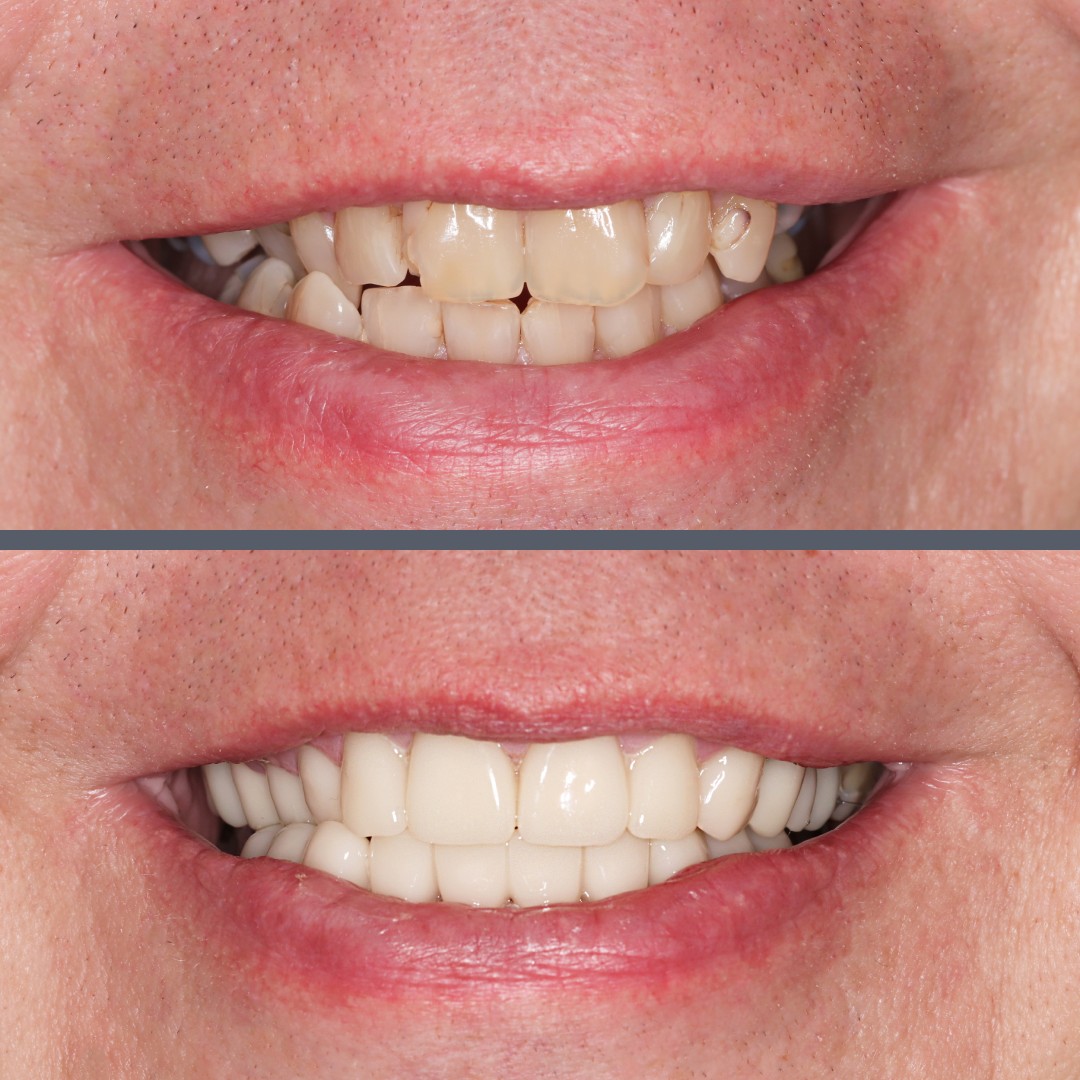 Our 54-year-old patient presented with aesthetic concerns and bite difficulties. The condition of his upper and lower teeth affected his appearance and made eating a challenge.