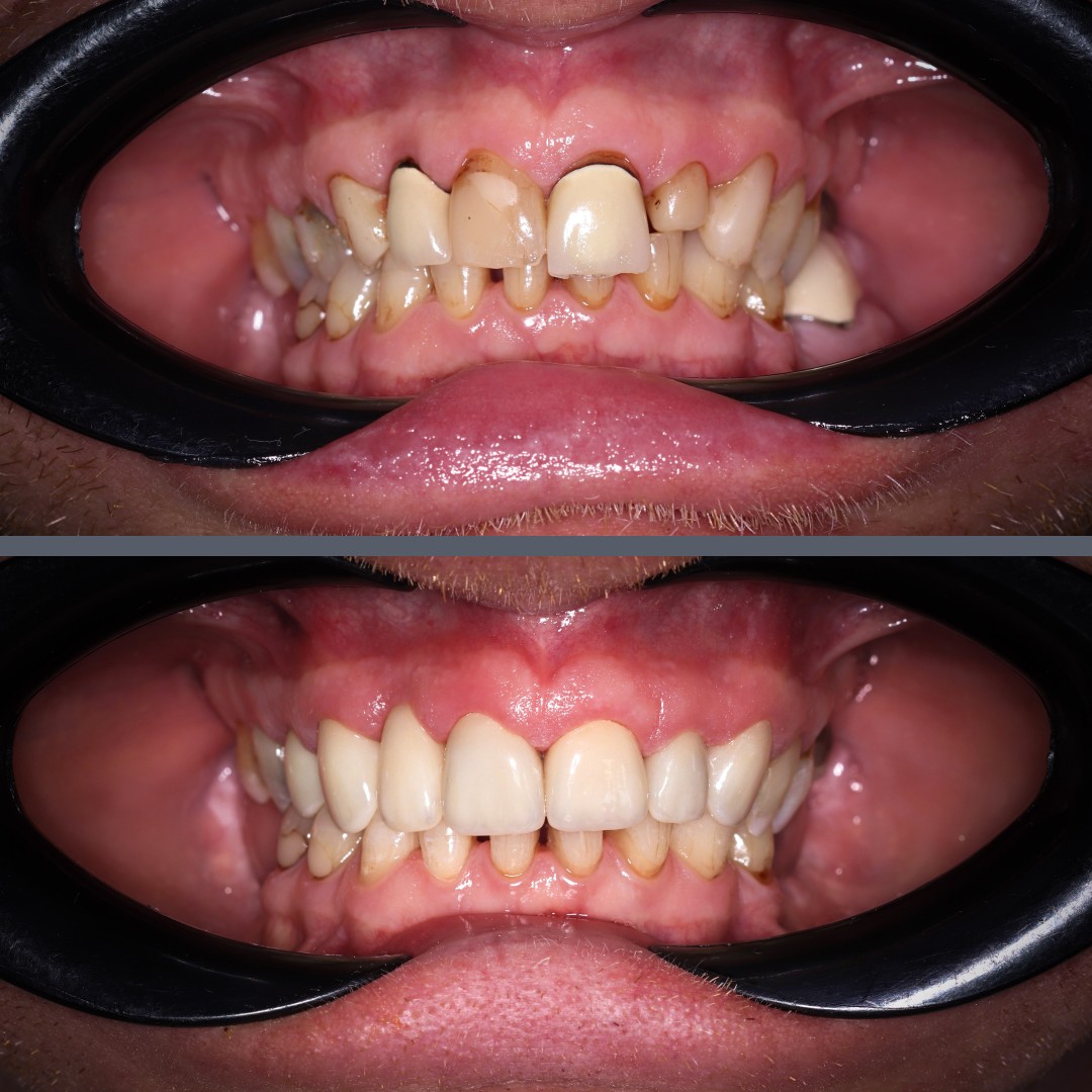 The newly restored, harmonious smile brought a visible improvement to the patient’s appearance and gave a significant boost to his self-confidence.