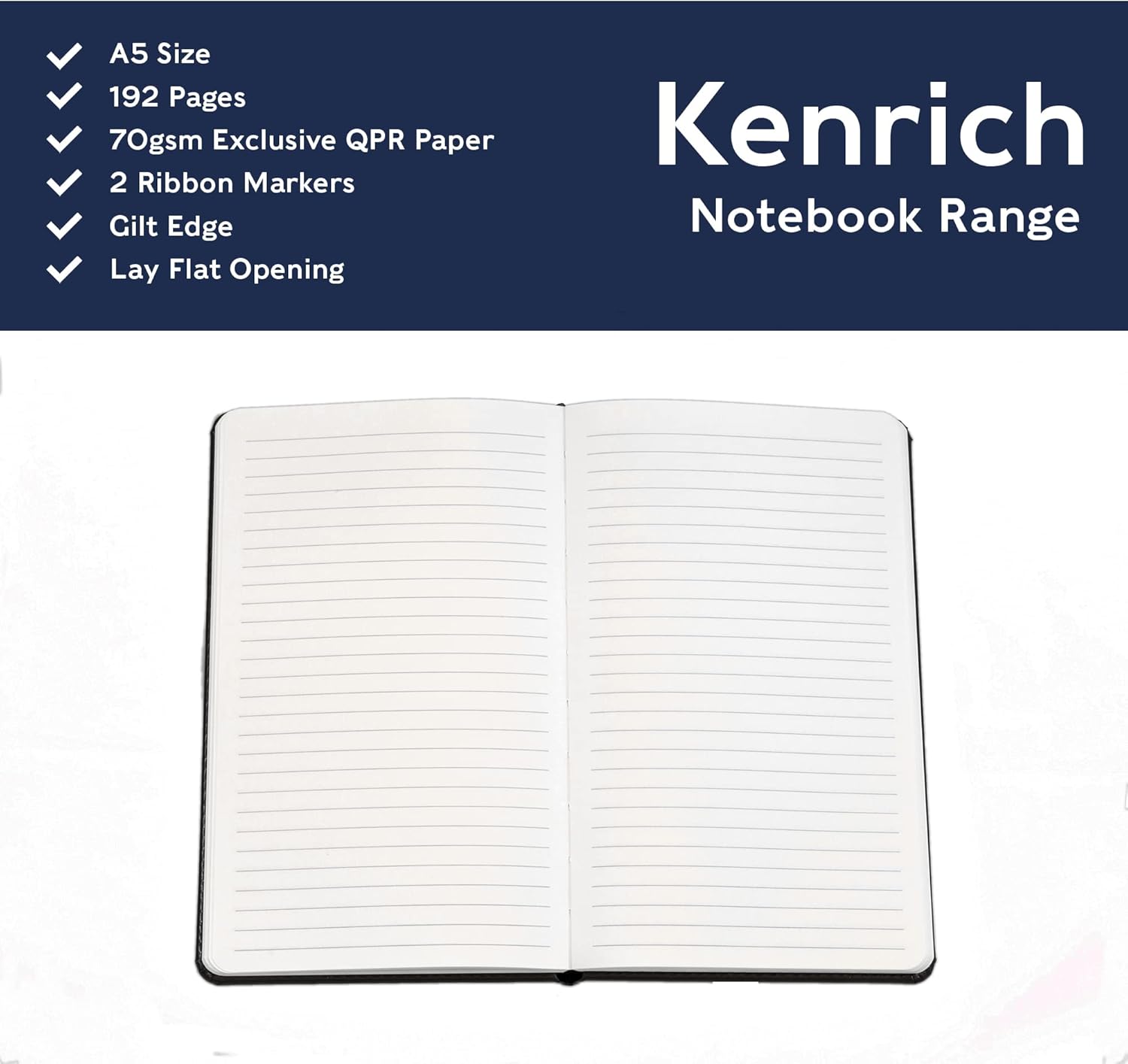 Epitomising confidence and professionalism, the Kenrich notebook is made with business in mind, and is truly the notebook for leaders and champions. Utilising premium materials and luxuriant finishing, Kenrich’s smart exterior makes it the perfect place for corporate notes and plans, lending prestige and gravitas to every idea. Matching Diary available.